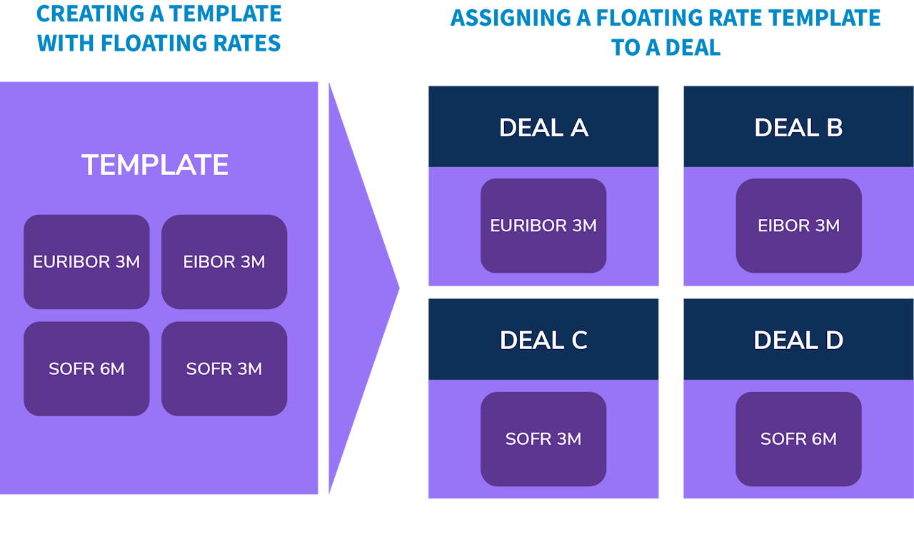 The Finverity Platform allows you to set up deals with fees linked to variable interest rates - which are called floating rates on the Platform (e.g. SOFR, SONIA).