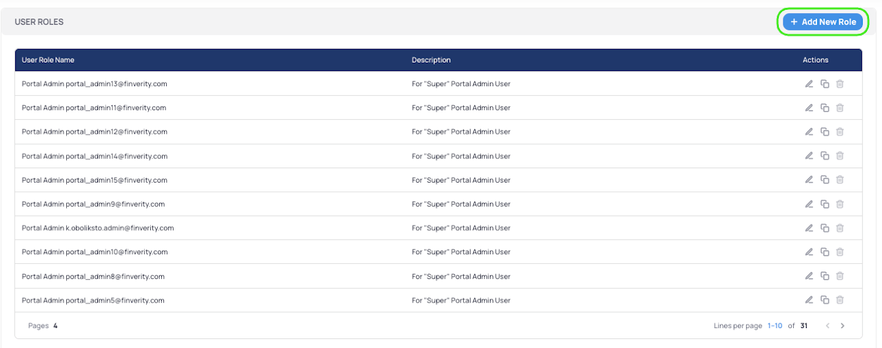 2. Click the "Add New Role" button to open the role creation form.
