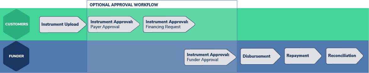 Instrument Approval is the second stage of Instrument Workflow and refers to all the steps on the Customer and Funder side that relate to review, approval or rejection of an Instrument.