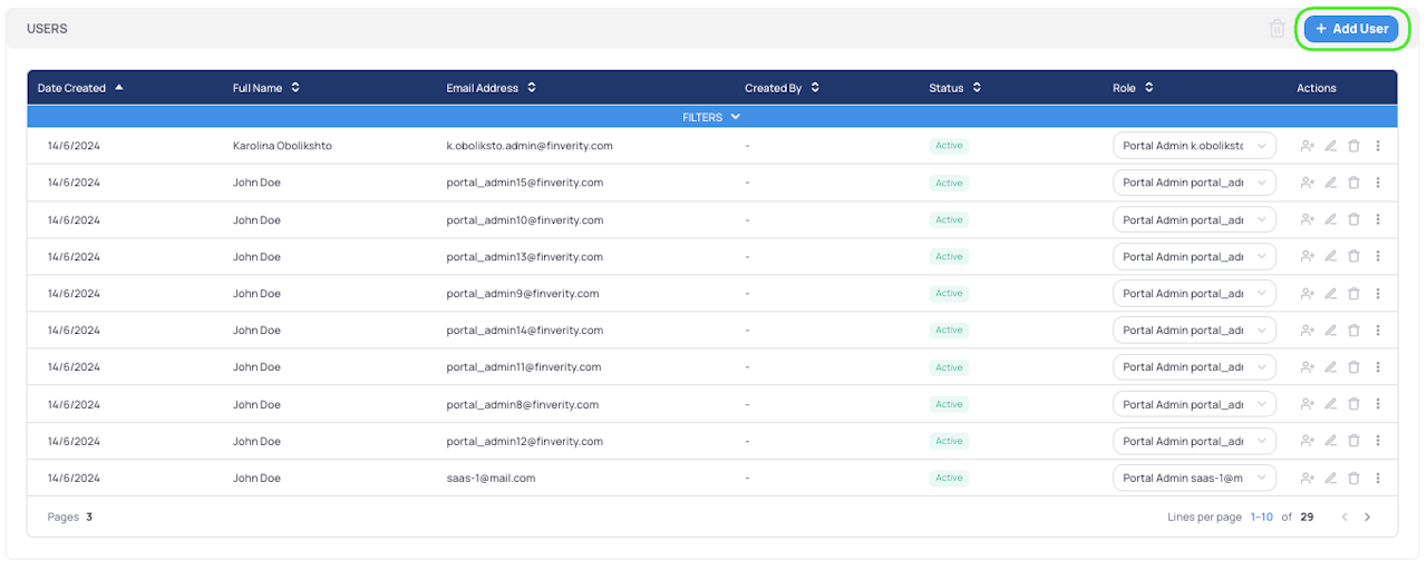 Click the "Add User" button this will open the user creation form.