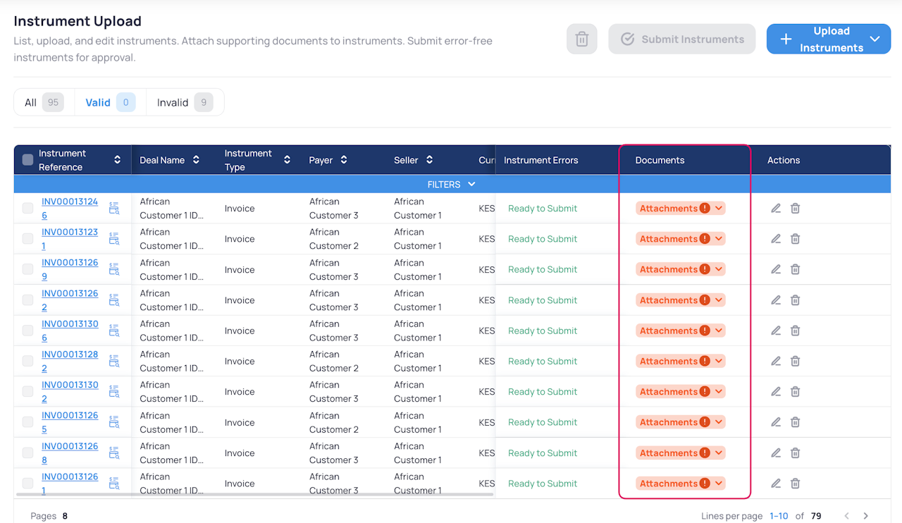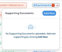 Review Instruments with an error: a red exclamation mark next to “Attachments”