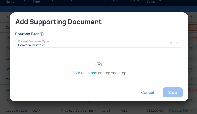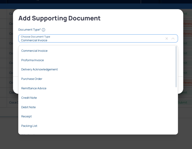 Choose the Document type from a drop-down list